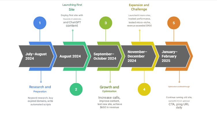- Nov 2024: One site hit 1 million impressions, with total revenue exceeding $900.