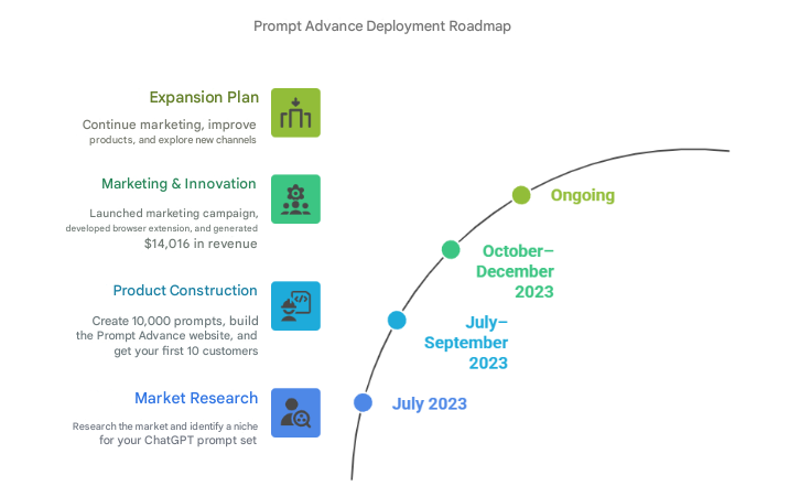 Primary Revenue Stream: Selling collection of 10,000 ChatGPT prompts (AI commands) on self-built website Prompt Advance (promptadvance.club).