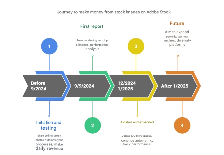 - Started selling stock images on Adobe Stock over a year before the video (before September 2024)