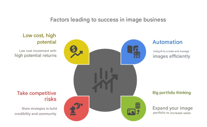 - Combined AI automation with “virtual real estate” strategy, viewing each image as digital asset generating passive income, similar to real estate but much lower cost (~$15–$50/month)