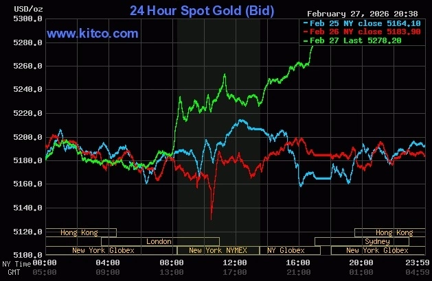 As of the close of trading on February 27, the spot price of gold in the world increased by 94 USD to 5,278 USD per ounce. This is the highest level since the session on January 30. The market rose mainly due to geopolitical tensions between the US and Iran and a decrease in US government bond yields.